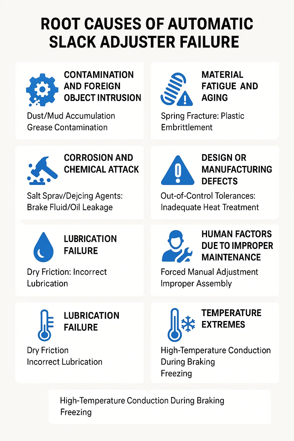 High-temperatus conduction in braking: Per longa Downhill descensus in montanis locis, calor ex fregit tympanum transfertur ad adjuster, causing carbonization de uncto vel attollere signacula.